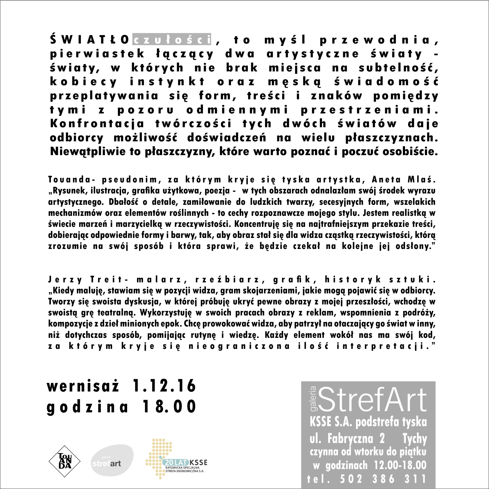 Zapraszamy na wernisaż w Galerii StrefArt w Tychach w dniu 01.12.2016 o godzinie 18.00 z udziałem obrazów autorstwa Jerzego Trejta.